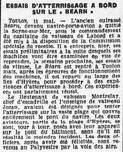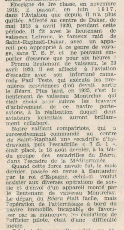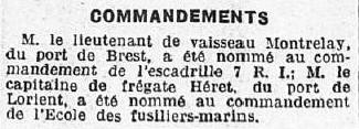 08/09/1926 Commandant l'escadrille 7R1/7S1 du porte-avions Béarn