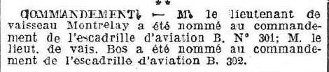 MONTRELAY est nommé à la tête de l’escadrille 7R1 et succède à