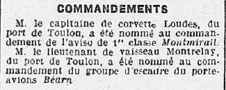 01/09/1928 Commandant le groupe d'escadrilles du porte-avions Béarn