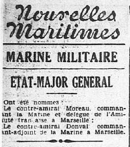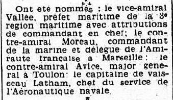 En août 1942, Commandant la marine et Préfet maritime à ALGER.
