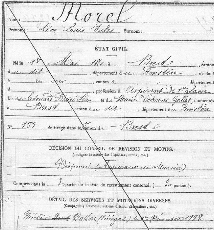 BREST (Finistère) - Décédé le 1er décembre 1882 à DAKAR (Sénégal)