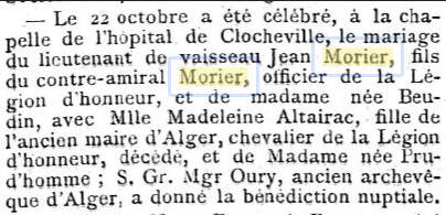 de Clocheville, le mariage du lieutenant de vaisseau Jean