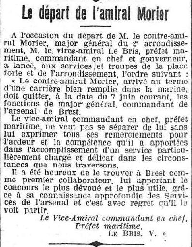 Directeur des mouvements du port de BREST. Idem au 1er janvier 1909.