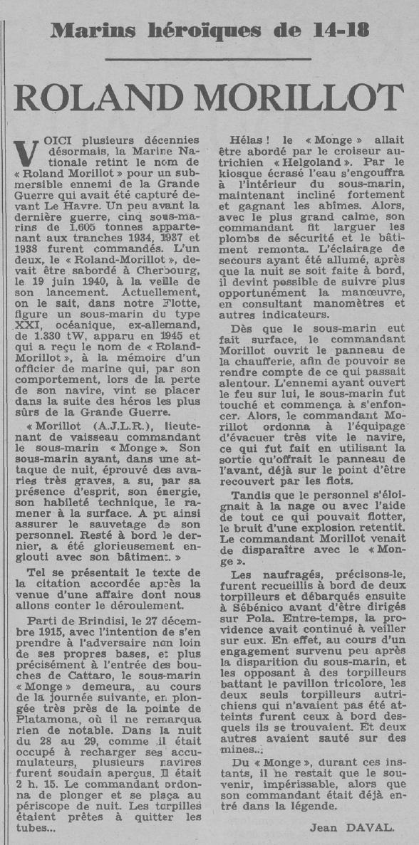 • Roland Morillot : un sous-marin non achevé détruit par la marine