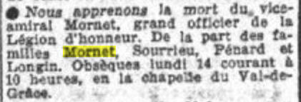 (Deux-Sèvres) - Décédé le 10 décembre 1942 au VAL de GRACE à PARIS