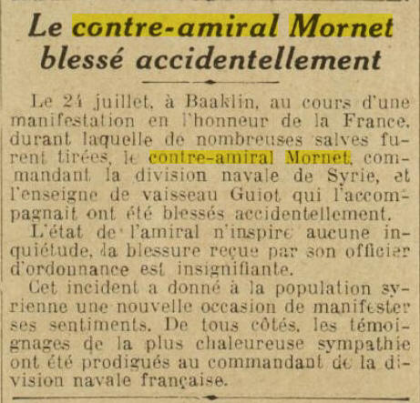 Commandant la Division navale de SYRIE, pavillon sur le croiseur