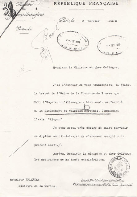 Commandant l'aviso "ALCYON", stationnaire au CONGO, Idem aux 1er