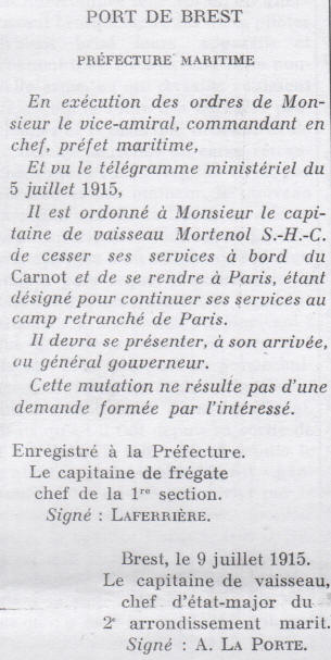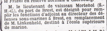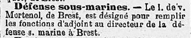 (nomination du 21 septembre 1912), Commandant des défenses maritimes