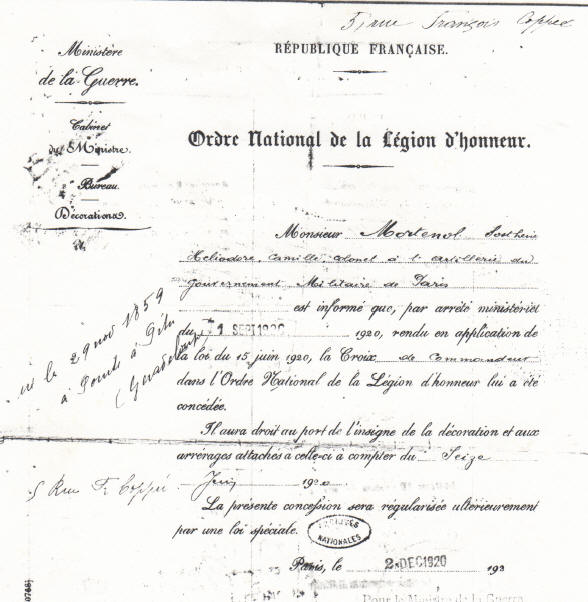 par le Général GALLIÉNI (qu'il connaît depuis la campagne de