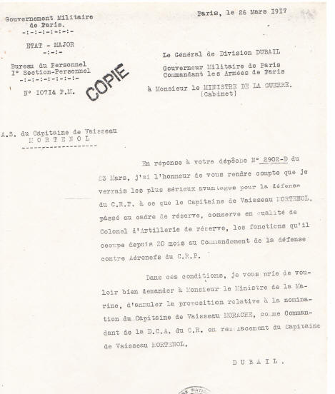 Dubail (gouverneur militaire de Paris qui a remplacé Gallieni à ce