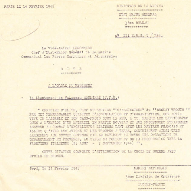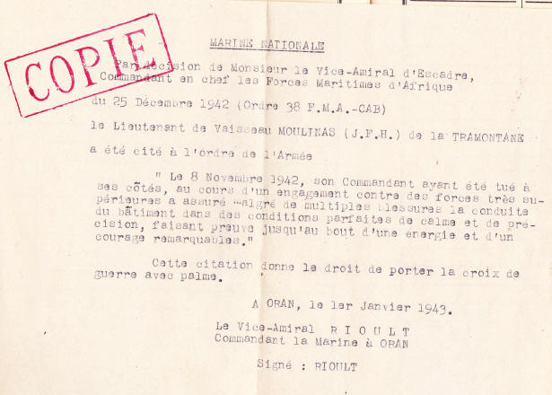 à bord de La "TRAMONTANE", à ORAN, il se trouvait sur la passerelle