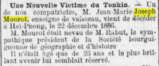 Né le 25 juin 1863 - Décédé le 22 décembre 1886 à HAIPHONG (Tonkin)
