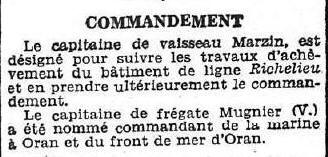 il commande le torpilleur "PALME" le 1er avril 1937.