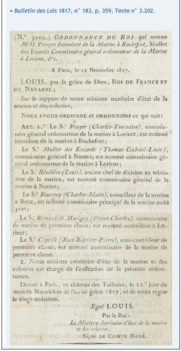 En 1821, commissaire général, ordonnateur de la Marine au port de
