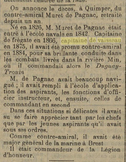 Duguay-Trouin en 1884 et participe aux combats de la rivière Min