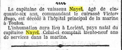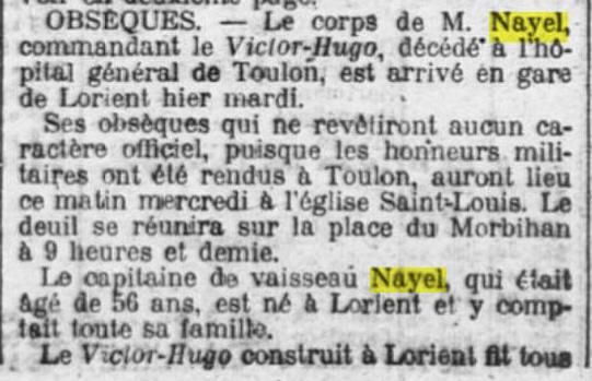 LORIENT (Morbihan) - Décédé le 22 novembre 1907 à l'Hôpital maritime