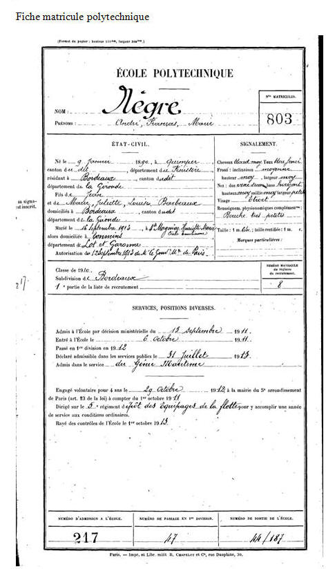 Ingénieur de 3ème classe le 1er octobre 1913.