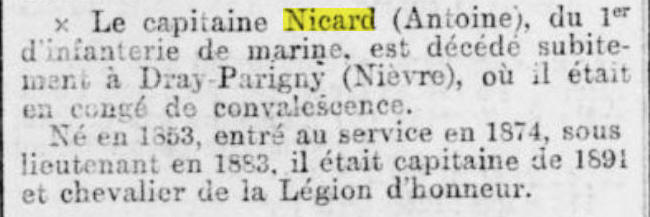 Au 1er janvier 1897, en service en régiment colonial.