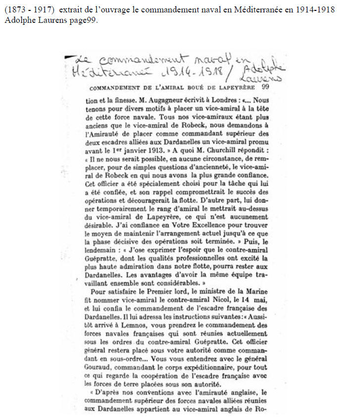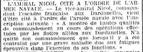 Dardanelles. N'a quitté son commandement que lorsqu'il y a été