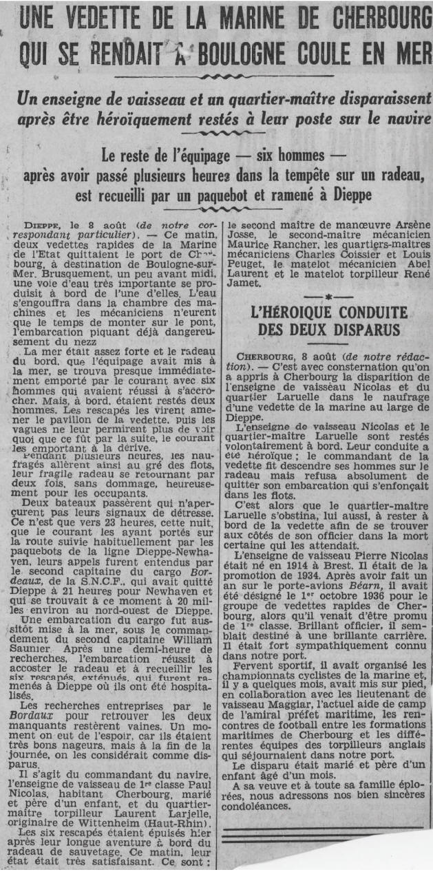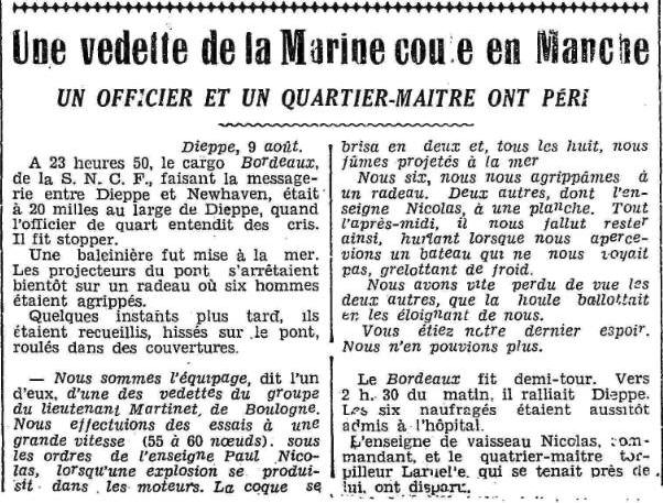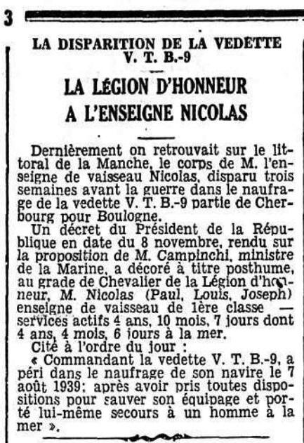 suivante : "Commandant la vedette VTB 9, a péri dans le naufrage de