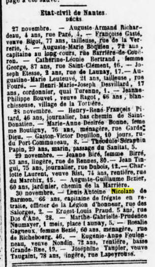 Au 1er janvier 1869, en résidence fixe à NANTES (décision