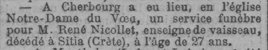 (Côtes du Nord) - Décédé le 9 septembre 1897 à SITIA (Grèce)