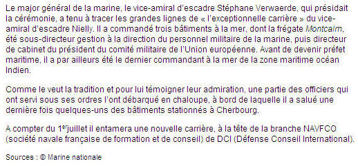 Le 4 août 2009, le contre-amiral Nielly prend le commandement de la