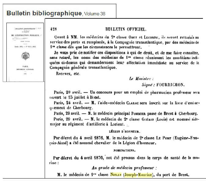 1881, Professeur à l'École de Médecine navale de BREST où il