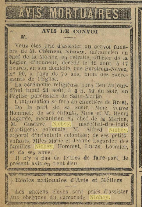 Marié à Marie Augustine FIGNOLLEAU à BREST (Finistère) en 1894