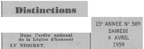 Niogret a reçu la citation suivante à l'ordre de la Division :