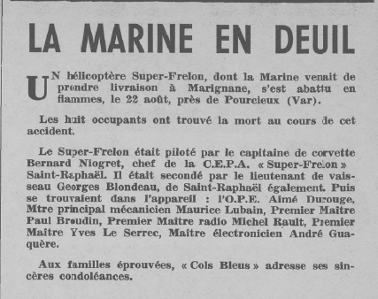 d'hélicoptères. A trouvé la mort en service aérien commandé le 22