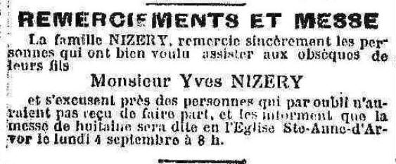 Extrait Le Nouvelliste du Morbihan / 31 août 1911