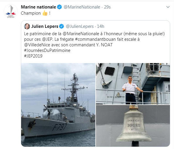 Le 18 janvier 2019, prend le commandement du patrouilleur de