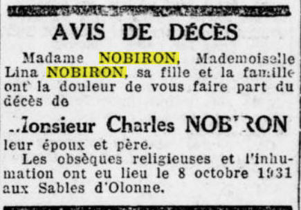 Né le 2 juin 1873 à Les SABLES-d'OLONNE (Vendée) - Décédé en octobre 1931.