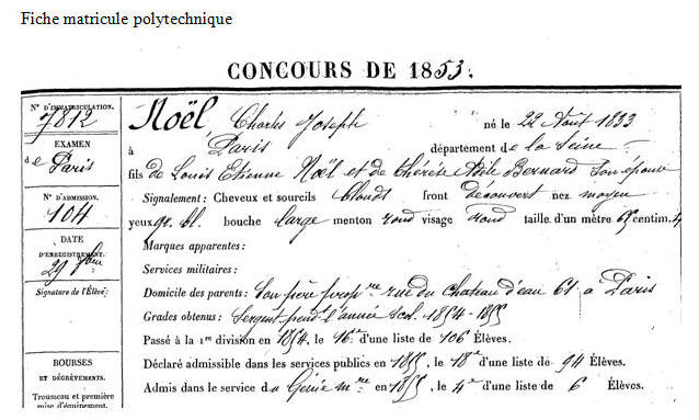 Elève de l'Ecole polytechnique le 1 novembre 1853