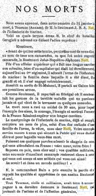 - Décédé en Janvier 1891 (?) à TOURANE, ANNAM.