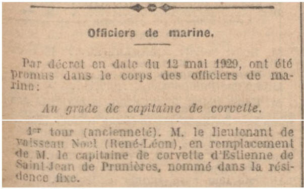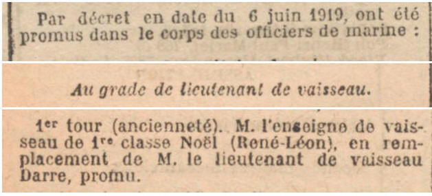 Enseigne de vaisseau de 1e classe le 5 octobre 1915 (JO du 29