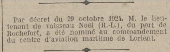 d’aviation maritime de LORIENT novembre 1924 à juillet 1925