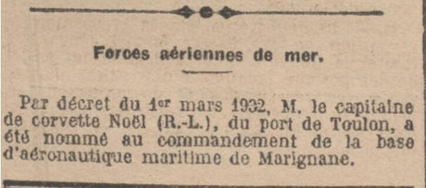 d’aéronautique maritime de MARIGNANE mai 1932 à décembre 1934