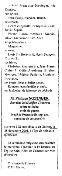 Décédé le 28 décembre 2001 à SÈVRES (Hauts-de-Seine).