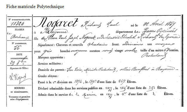 Élève de l'École polytechnique en 1875, opte pour la Marine.