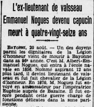Décédé le 18 août 1934 à BAYONNE (Pyrénées Atlantiques)