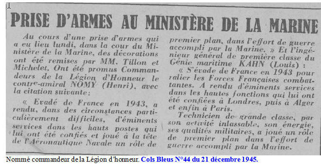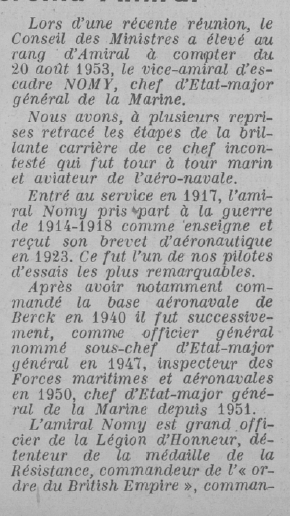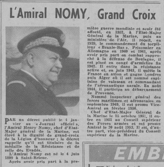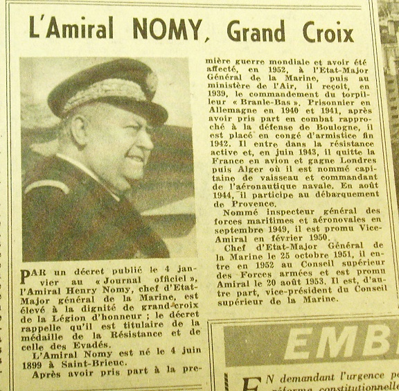 Jusqu‘en 1960 l'amiral Nomy participe au