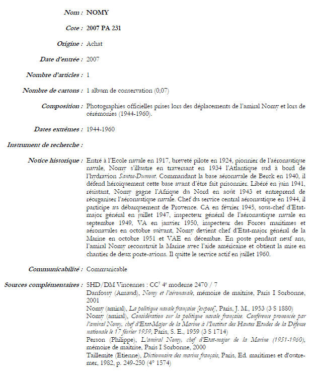 Danfossy (Arnaud), Nomy et l’aéronavale, mémoire