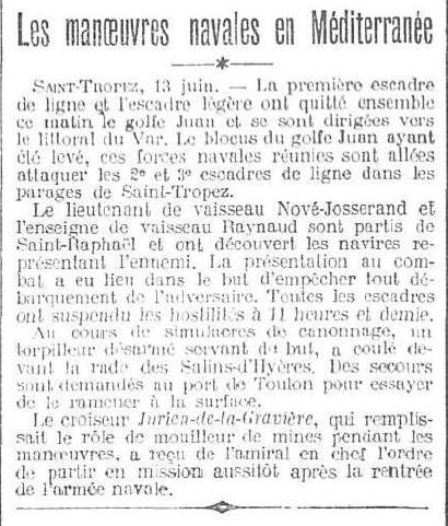 Au 1er janvier 1914, Officier aviateur sur le croiseur "FOUDRE",