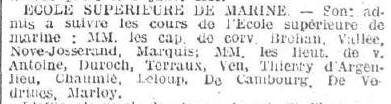 Officier breveté de l'École Supérieure de la Marine en 1921.