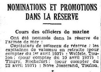 Au 1er janvier 1932; port TOULON, inscrit au tableau d'avancement.