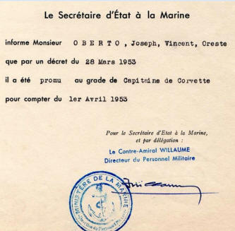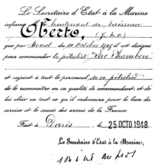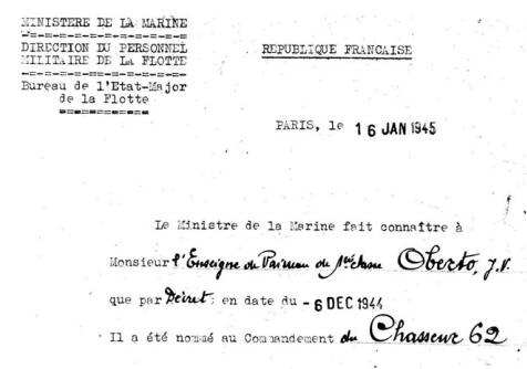 15 octobre 1944: aide de camp de l’Amiral Préfet maritime de la