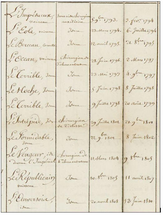 classe du 21 février 1794 au 3 mars 1797, Brest