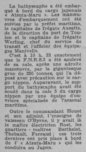 Puis affecté au Groupe des Bathyscaphes de 1er janvier 1961 au 20